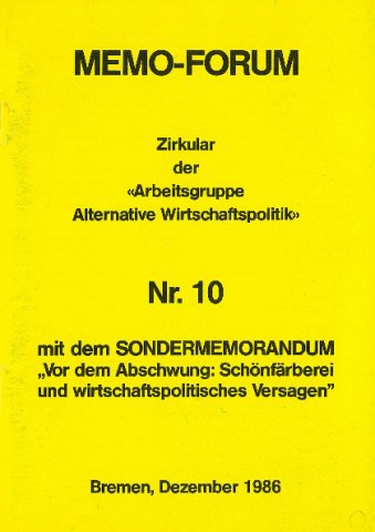 Am 25. November hat die Arbeitsgruppe Alternative Wirtschaftspolitik auf einer Pressekonferenz in Bonn ein SONDERMEMORANDUM zur aktuellen wirtschaftlichen Lage unter dem Titel Vor dem Abschwung: Schönfärberei und wirtschaftspolitisches Versagen vorgestellt. Um dieses SONDERMEMORANDUM schnell allen unseren Lesern zur Verfügung stellen zu können, ist diese Ausgabe des MENO-FORUM kurzfristig bereits vorzeitig herausgebracht worden.