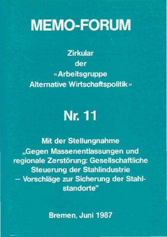 Am l. Juni hat die Arbeitsgruppe Alternative Wirtschaftspolitik auf einer Pressekonferenz in Bonn ein Stellungnahme zur aktuellen Situation in der bundesdeutschen Stahlindustrie und den geplanten Massenentlassungen sowie Vorschläge zu einer alternativen Stahlpolitik vorgestellt. Wir haben deshalb den Erscheinungszeitpunkt dieser Ausgabe des MEMO-FORUM um einige Wochen verzögert, um diese Stellungnahme relativ schnell unseren Lesern zur Verfügung stellen zu können.