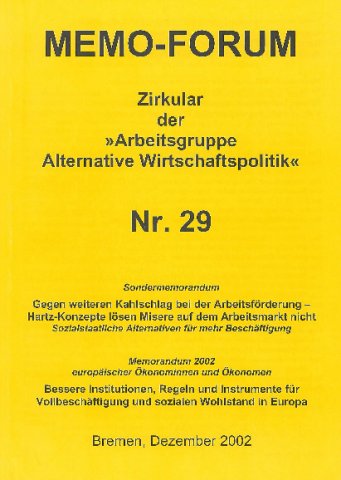 Das MEMO-FORUM wird als "Zirkular der Arbeitsgruppe Alternative Wirtschaftspolitik" zukünftig in der Regel nur noch mit Veröffentlichungen der Arbeitsgruppe bzw. der europäischen Ökonominnen und Ökonomen für eine alternative Wirtschaftspolitik in Europa erscheinen.