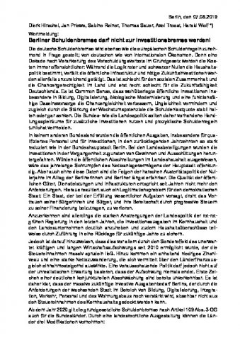 Berliner Schuldenbremse darf nicht zur Investitionsbremse werden!