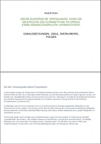 Grüne europäische Zentralbank: Kann die Geldpolitik die Klimarettung einer Niedrigzinspolitik unterstützen?