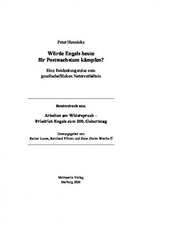Sonderdruck aus: Arbeiten am Widerspruch – Friedrich Engels zum 200. Geburtstag
