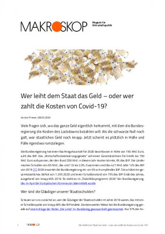 Wer leiht dem Staat das Geld – oder wer zahlt die Kosten von Covid-19?