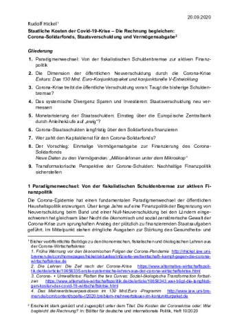 Staatliche Kosten der Covid-19-Krise – Die Rechnung begleichen: Corona-Solidarfonds, Staatsverschuldung und Vermögensabgabe