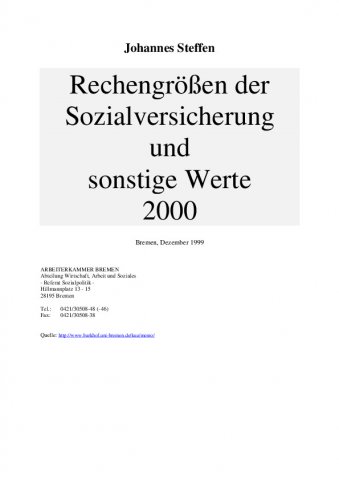 Rechengrößen der Sozialversicherung und sonstige Werte 2000