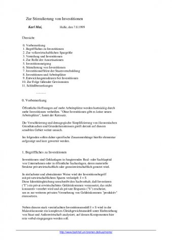 Zur Stimulierung von Investitionen
