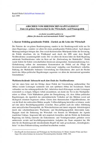 Zum rot-grünen Kurswechsel in der Wirtschafts- und Finanzpolitik