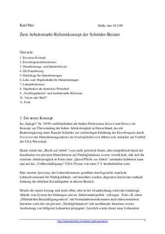 Zum Arbeitsmarkt-Reformkonzept der Schröder-Berater