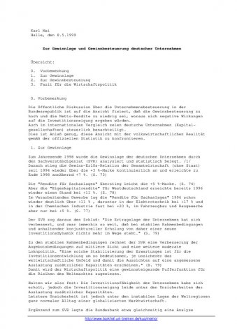 Zur Gewinnlage und Gewinnbesteuerung deutscher Unternehmen