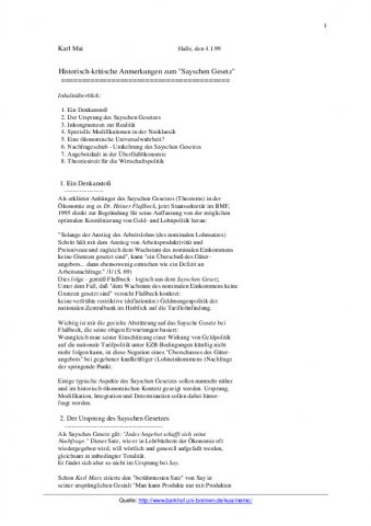 Historisch-kritische Anmerkungen zum "Sayschen Gesetz"