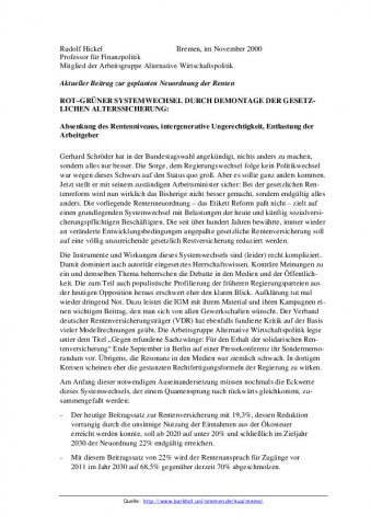 Rot-Grüner Systemwechsel durch Demontage der gesetzlichen Alterssicherung