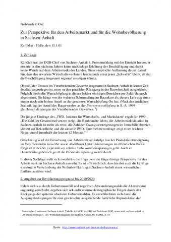 Zur Perspektive für den Arbeitsmarkt und für die Wohnbevölkerung in Sachsen-Anhalt
