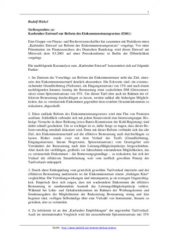 Stellungnahme zu: Karlsruher Entwurf zur Reform des Einkommensteuergesetzes (EStG)