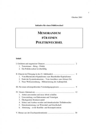 Am 11. September 2001 wurde die Welt mit einer neuen Form des Terrorismus konfrontiert. Wir verurteilen diese entsetzlichen Anschläge aufs Schärfste, für Terror gibt es keine Legitimation. Obwohl bekannt ist, dass bei der Bekämpfung des Terrors nach den Ursachen von Gewalt und Hass gefragt werden muss, dominieren die alten militärischen Antworten.