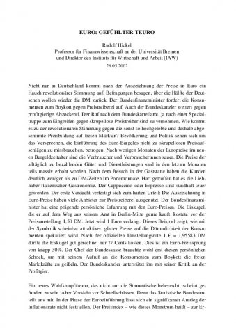 Nicht nur in Deutschland kommt nach der Auszeichnung der Preise in Euro ein Hauch revolutionärer Stimmung auf. Befragungen besagen, über die Hälfte der Deutschen wollen wieder die DM zurück. Der Bundesfinanzminister fordert die Konsumenten zum Boykott gegen Preistreiberei auf. Auch der Bundeskanzler wettert gegen profitgierige Abzockerei.