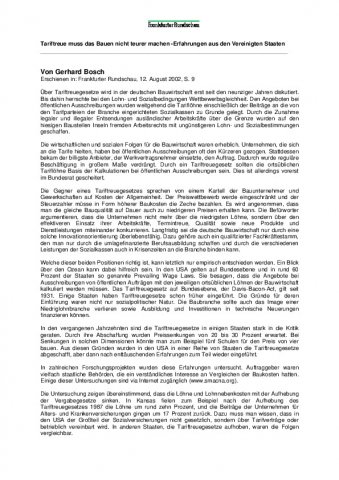 Tariftreue muss das Bauen nicht teurer machen -Erfahrungen aus den Vereinigten Staaten