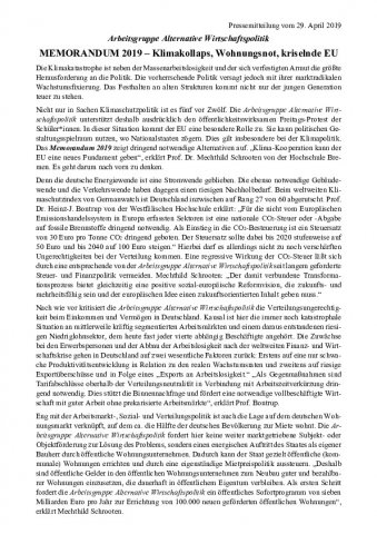 Pressemitteilung: MEMORANDUM 2019 vorgestellt