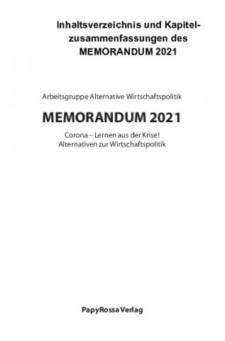 Inhaltsverzeichnis und Kapitelzusammenfassungen des MEMORANDUM 2021