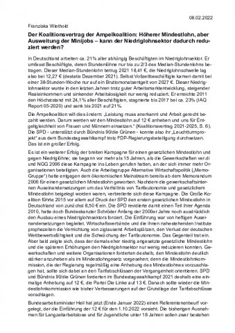 Der Koalitionsvertrag der Ampelkoalition: Höherer Mindestlohn, aber Ausweitung der Minijobs