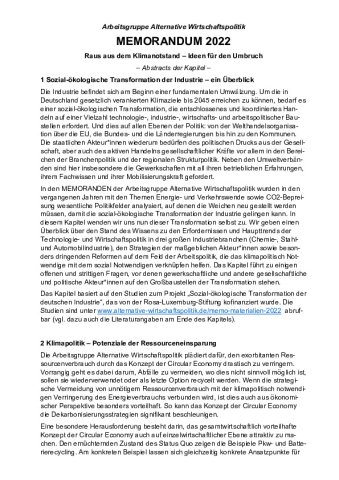 Abstracts der Kapitel des Memorandum 2022