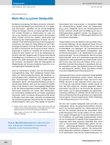 Der Text ist zuerst erschienen in Wirtschaftsdienst - Zeitschrift für Wirtschaftspolitik, 2022, 102(6), 442-444.