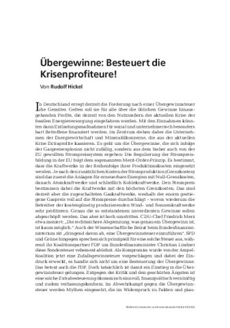 In Deutschland erregt derzeit die Forderung nach einer Übergewinnsteuer die Gemüter. Gelten soll sie für alle über die üblichen Gewinne hinausgehenden Profite, die derzeit von den Nutznießern der aktuellen Krise der fossilen Energieversorgung eingefahren werden. Mit den Einnahmen könnten dann Entlastungsmaßnahmen für sozial und unternehmerisch besonders hart Betroffene finanziert werden.