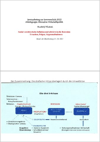 Sozial zerstörerische Inflation und abwärts in die Rezession Ursachen, Folgen, Gegenmaßnahmen