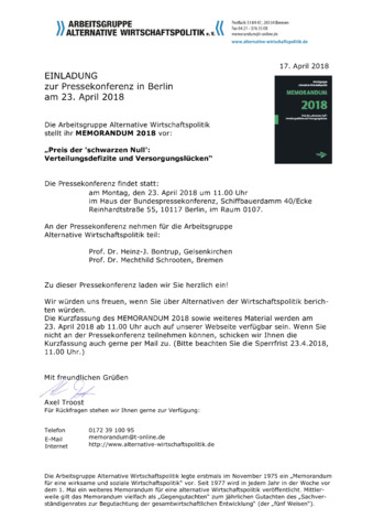 Einladung zur Pressekonferenz in Berlin am 23. April 2018 - Memorandum 2018