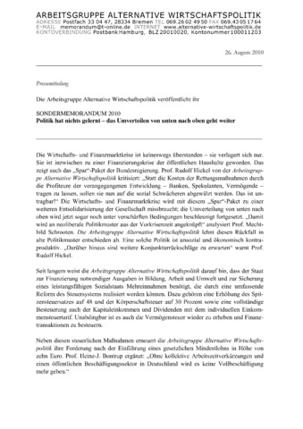 Die Arbeitsgruppe Alternative Wirtschaftspolitik lehnt diesen Rückfall in alte Politikmuster entschieden ab. Eine solche Politik ist unsozial und ökonomisch kontraproduktiv. Alternativen sind möglich und notwendig.