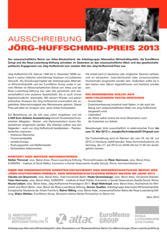 Ausschreibung: Jörg-Huffschmid-Preis 2013