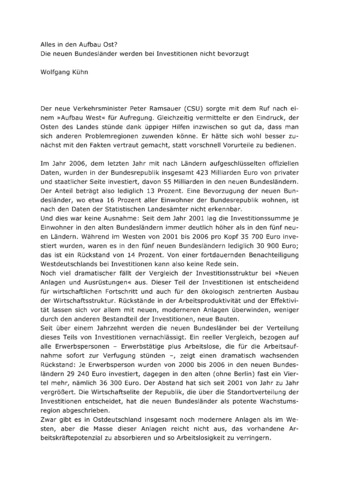 Alles in den Aufbau Ost? Die neuen Bundesländer werden bei Investitionen nicht bevorzugt