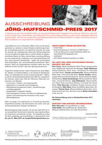 jedes Jahr, neben verschiedenen Expertisen, das Memorandum als Stellungsnahme für eine andere Wirtschaftspolitik.