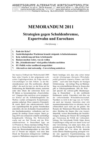 Strategien gegen Schuldenbremse, Exportwahn und Eurochaos