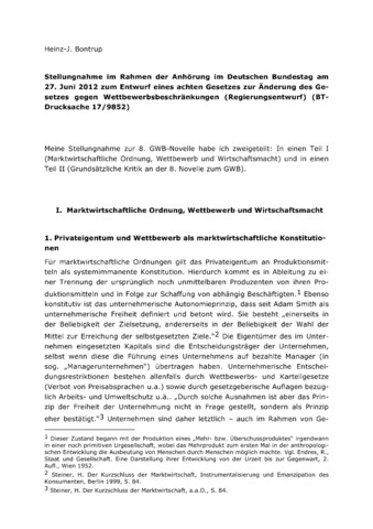Stellungnahme im Rahmen der Anhörung im Deutschen Bundestag am 27. Juni 2012 zum Entwurf eines achten Gesetzes zur Änderung des Gesetzes gegen Wettbewerbsbeschränkungen