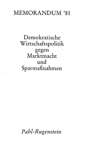 Bei der Arbeitsgruppe“Alternativen der Wirtschaftspolitik“, die dieses „Memorandum '8“ Ende April1981 der Öffentlichkeit vorgelegt hat, handelt es sich um einen losen Zusammenschluß von Wirtschaftswissenschaftlern aus der Bundesrepublik Deutschland und West-Berlin. Die Arbeitsgruppe hat erstmals im November 1975 angesichts des rasanten Anstiegs der Arbeitslosigkeit ein Memorandum vorgelegt. Zwischenzeitlich sind weitere fünf »Alternativgutachten« jeweils zum »1. Mai« präsentiert worden. Aufgrund der sich zuspitzenden ökonomischen und sozialen Situation wurde erstmals im Dezember 1980 ein »Sondermemorandum« vorgelegt. Auch im September 1981 ist angesichts der krisenverschärfenden Spar- und Rezessionspolitik der Bundesregierung ein »Sondermemorandum« vorgelegt worden.