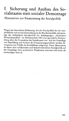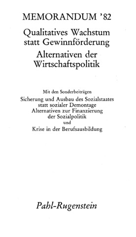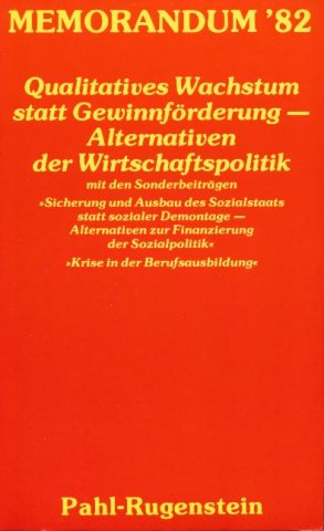 Das »Memorandum '82« ist von der »Arbeitsgruppe: Alternativen der Wirtschaftspolitik« verfaßt und am 27. April1982 auf einer Pressekonferenz in Bonn der Öffentlichkeit vorgelegt worden. Seit 1975 ist von dieser Arbeitsgruppe- außer 1976 -jedes Jahr zum 1. Mai ein Memorandum unterbreitet worden. Aus aktuellem wirtschaftspolitischen Anlaß wurde im Dezember 1980 sowie September 1981 jeweils ein »Sondermemorandum« vorgelegt.