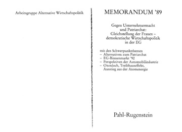 Das MEMORANDUM '89 ist auf zwei Wochenendtagungen der ,Arbeitsgruppe Alternative Wirtschaftspolitik' diskutiert, von einer Endredaktion im Februar in die vorliegende Fassung gebracht und Ende April 1989 auf einer Pressekonferenz in Bonn der Öffentlichkeit vorgelegt worden....