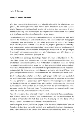 jedes Jahr, neben verschiedenen Expertisen, das Memorandum als Stellungsnahme für eine andere Wirtschaftspolitik.