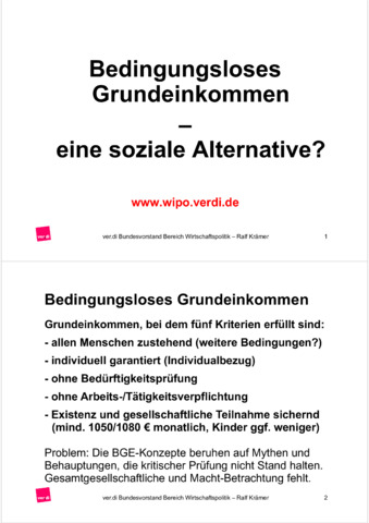 Bedingungsloses Grundeinkommen - eine soziale Alternative?