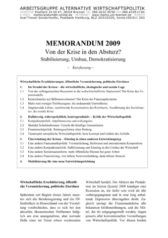 Spätestens seit Beginn dieses Jahres mussten sich die Bundesregierung und die Öffentlichkeit in Deutschland von der Vorstellung verabschieden, dass es sich bei den aktuellen ökonomischen Problemen lediglich um eine unangenehme, aber normale Delle einer im Trend robust wachsenden Wirtschaft handelt. Der Absturz der Produktion im letzten Quartal 2008 kündigte eine Rezession an, die tiefer sein wird als alle vorhergegangenen und in eine lang anhaltende Depression überzugehen droht. Zugleich sprengt die Finanzmarktkrise alle bekannten Größenordnungen, und die Mittel, die ihr entgegengestellt werden, liegen jenseits aller konventionellen Vorstellungen von Wirtschaftspolitik. Vor diesen beiden Erschütterungen verblassen in der öffentlichen Wahrnehmung die Krisen der Umwelt und des sozialen Zusammenhaltes, obgleich sie weiter fortschreiten und ihre Bedrohlichkeit sich zuspitzt.