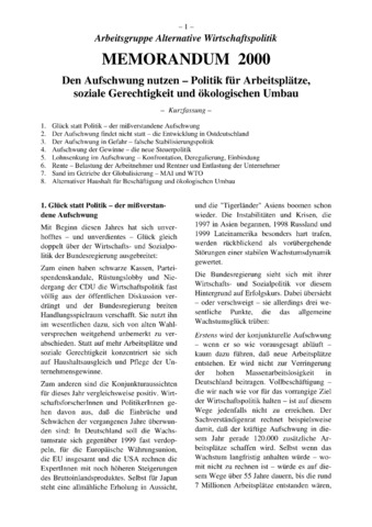 Den Aufschwung nutzen - Politik für Arbeitsplätze, soziale Gerechtigkeit und ökologischen Umbau