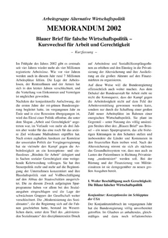 Im Frühjahr des Jahres 2002 gibt es erstmals seit vier Jahren wieder mehr als vier Millionen registrierte Arbeitslose. Wie vor vier Jahren werden auch in diesem Jahr rund 7 Millionen Arbeitsplätze fehlen. Die Lage der Arbeitslosen, der RentnerInnen und der Armen hat sich in den letzten Jahren verschlechtert, und die Verteilung von Einkommen und Vermögen ist ungleicher geworden.