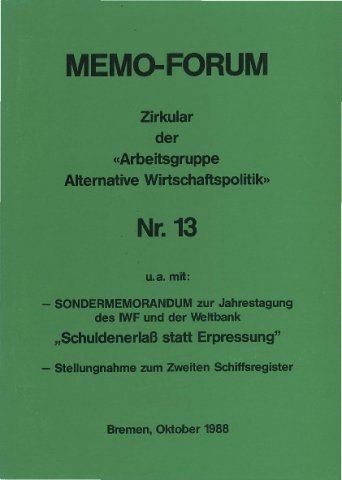jedes Jahr, neben verschiedenen Expertisen, das Memorandum als Stellungsnahme für eine andere Wirtschaftspolitik.