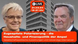Nach dem Karlsruher Urteil zur Schuldenbremse setzt die Ampel auf Haushaltskürzungen und hält bisher an der Schuldenbremse fest. Im Gespräch: Ulrike Herrmann und Rudolf Hickel mit Eva Völpel